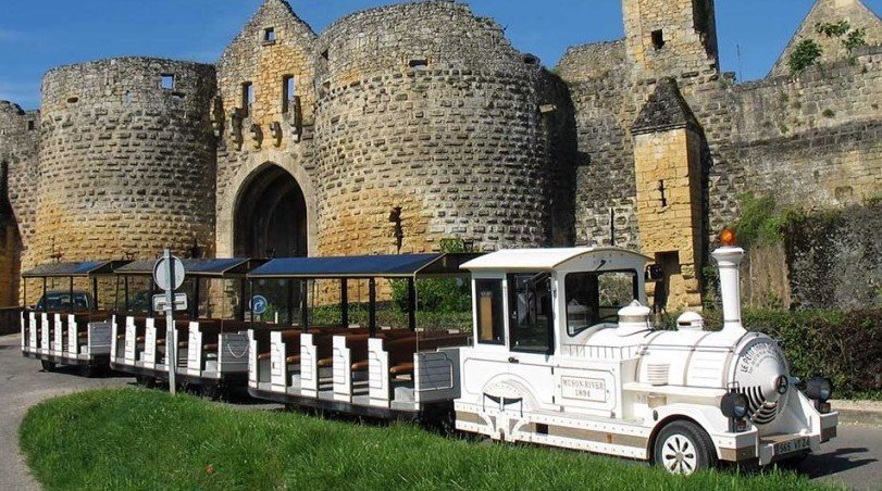 Το τουριστικό τρενάκι ανεβαίνει τις ανηφόρες του λόφου στον οποίο είναι χτισμένη αυτή η bastide (έτσι ονομάζονται οι οχυρωμένες μεσαιωνικές πόλεις της Γαλλίας) που αποκαλείται και «Ακρόπολη του Perigord», διασχίζει την εντυπωσιακή μεσαιωνική πύλη porte des Tours και τερματίζει στην Place de la Halle. Λίγα μέτρα από την κεντρική πλατεία βρίσκεται το Belvédère de la barre, ένα σημείο με συγκλονιστική θέα στο πανόραμα της καταπράσινης κοιλάδας και του ποταμού Dordogne από ύψος 200 μέτρων είναι συγκλονιστικό. Tα πέτρινα σπίτια του οικισμού του 13ου αιώνα είναι στολισμένα με λουλούδια και φιλοξενούν ξενώνες, κρεπερί, κοσμηματοπωλεία, γκουρμέ μπακάλικα και μαγαζιά με artisanal παγωτό.